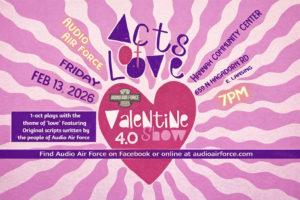 This coming production will be the 4th year for the “Acts of Love”. With that in mind, it’s time to think about whether you’d like to submit something to be considered as a part of this show. If you’re interested in doing so, we’d like to have your submission by Wed. January 21, 2026 at 11:59pm. You can send them via email (members of Audio Air Force only)